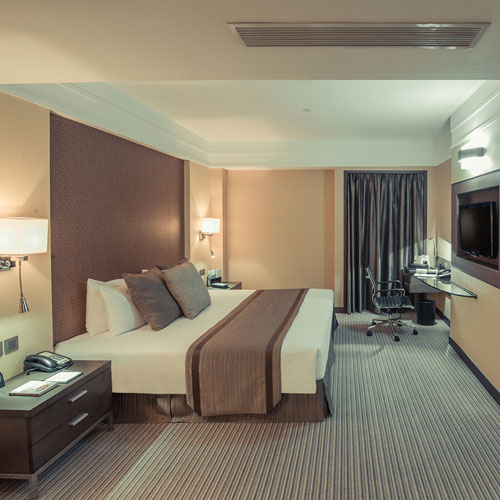 The 22 story building with its 352 brand new and elegantly decorated guestrooms, feature state-of-the-art technology, exclusive amenities and services that cater to the needs of discerning business travellers and tourists alike. Features include various business facilities: a large and comfortable work-desk, air-conditioning, two telephone lines with free internet access, voicemail, a mini bar, a safe, tea/coffee making facilities, a radio/TV with satellite channels, and iron/ironing board. In addition, the Executive Club Room and Suite provides business travellers with the highest levels of comfort and convenience; a complete line of complimentary services such as a free mini bar, laundry service and private lounge check-in and check-out service plus all-day-long free drinks and a variety of local favorites for afternoon tea and evening refreshments. Smoking and non-smoking rooms as well as rooms to accommodate for people with special needs are also available.