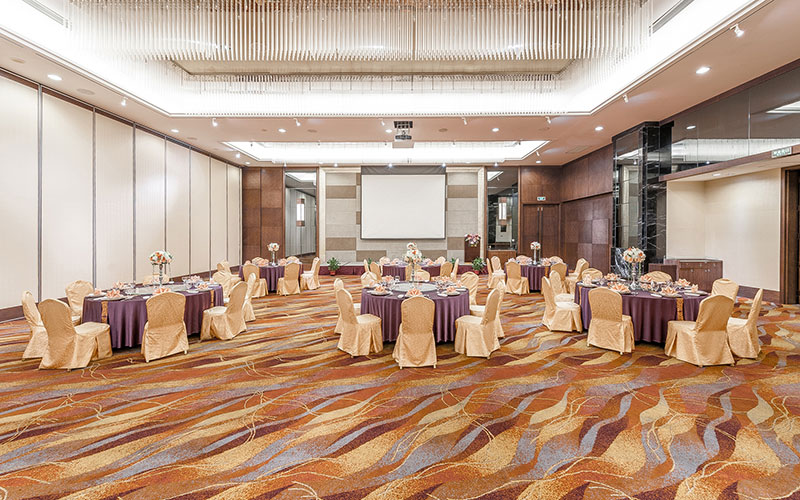 With 5.5 meters high without column, The Garden Ballroom can cater to up to 500 guests who have more than 560 square meters to dine and dance. It can also be split into 2 similar large parts if required for smaller events.